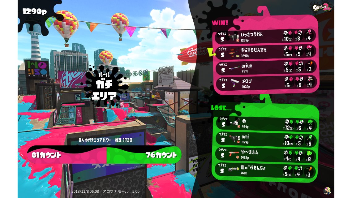 | Mode | Splat Zones - Ranked Battle | ||||||||||||||||||||||||||||||||||||||||