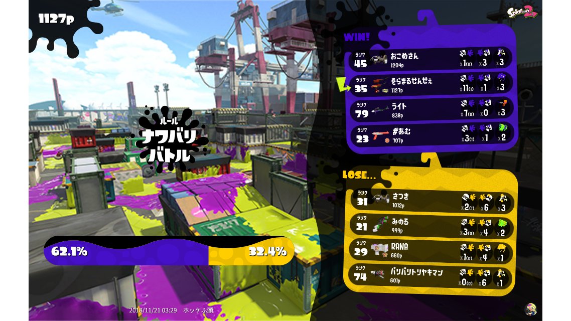 | Mode | Turf War - Regular Battle | |||||||||||||||||||||||||||||||