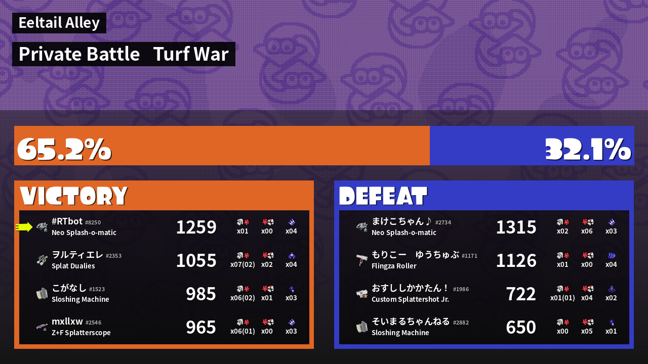| Mode | Turf War - Private Battle | ||