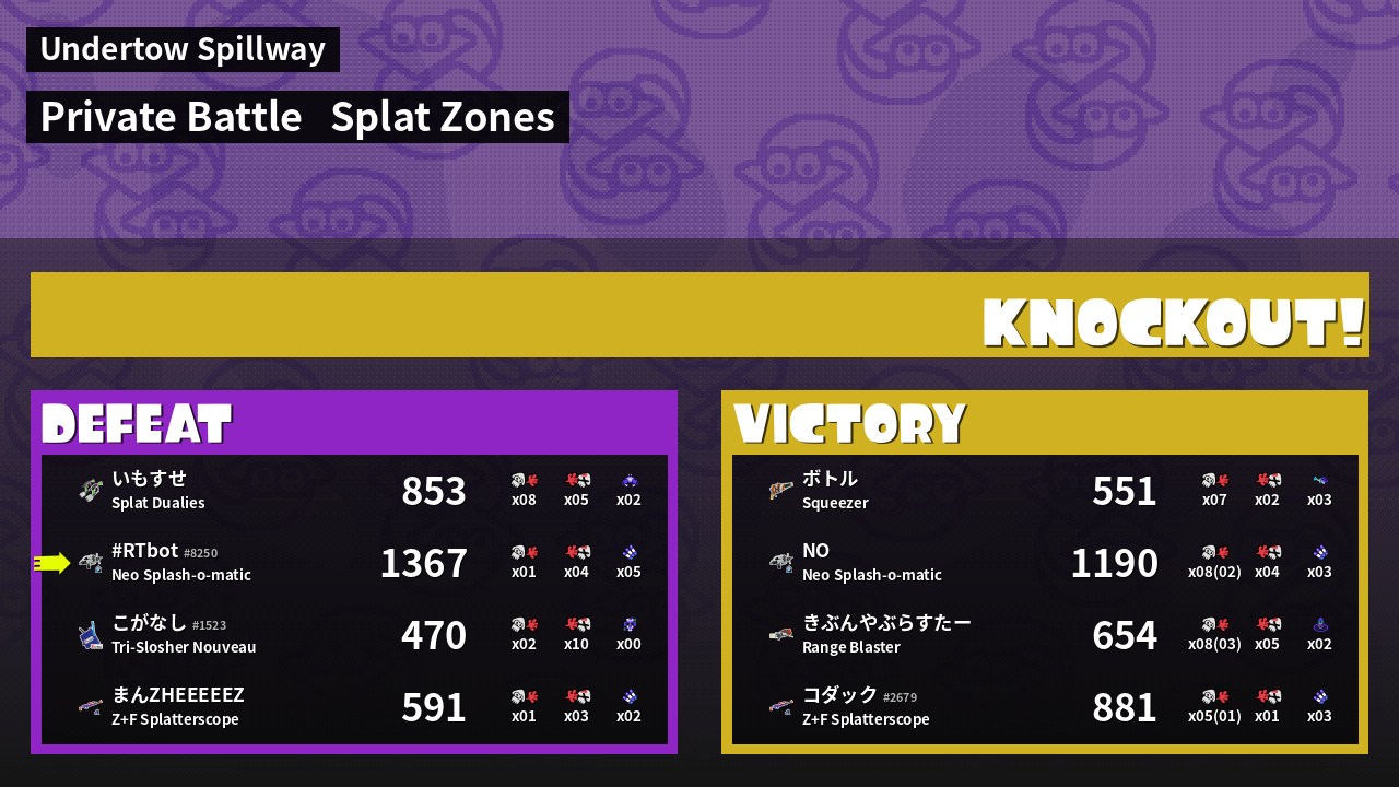 | Mode | Splat Zones - Private Battle | ||