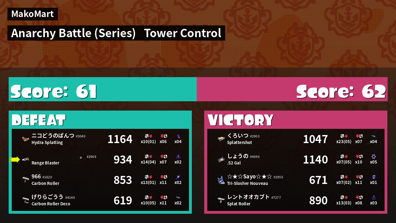 | Mode | Tower Control - Anarchy Battle (Series) | ||