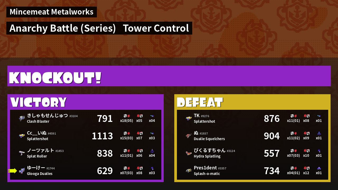 | Medals | #1 Booyah Bomb User #2 Score Booster #2 Splat Assister | ||