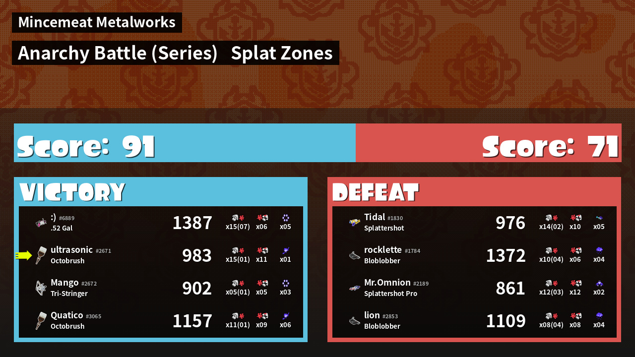 | Mode | Splat Zones - Anarchy Battle (Series) | ||