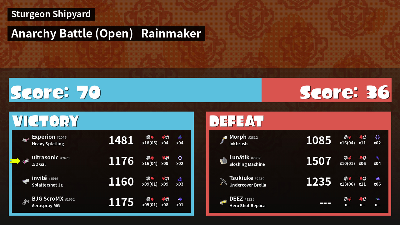 | Mode | Rainmaker - Anarchy Battle (Open) | ||