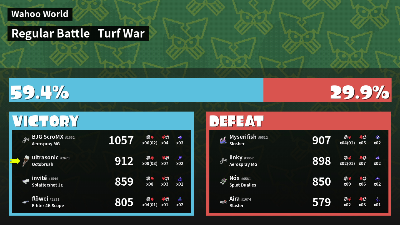 | Medals | #1 Overall Splatter #1 Popular Target #1 Enemy-Base Inker | ||