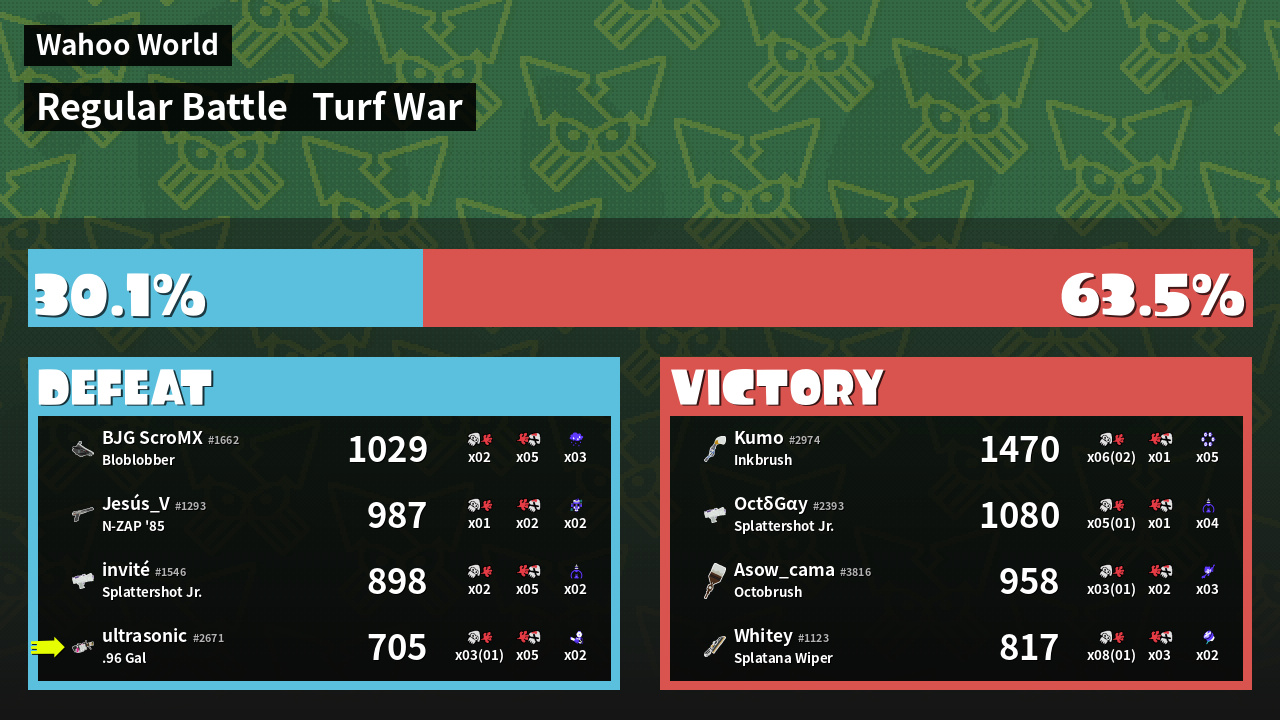 | Mode | Turf War - Regular Battle | ||