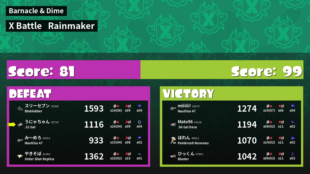 | Weapon | .52 Gal ( Splash Wall / Killer Wail 5.1) |