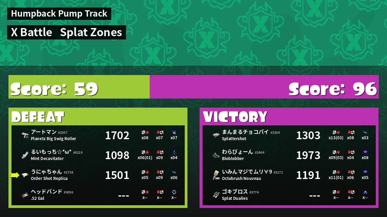 | Mode | Splat Zones - X Battle |
