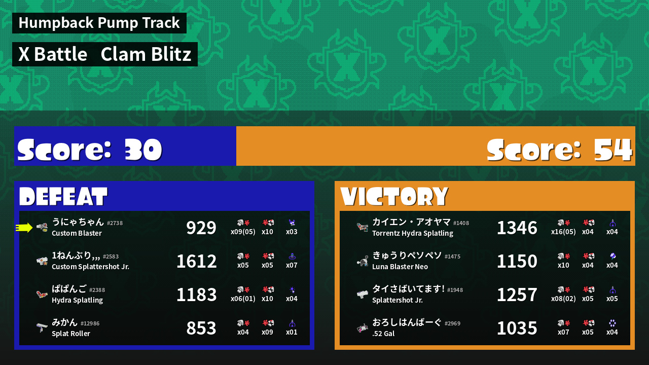 | Mode | Clam Blitz - X Battle |