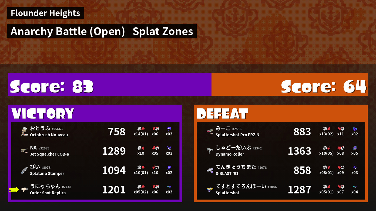 | Mode | Splat Zones - Anarchy Battle (Open) |