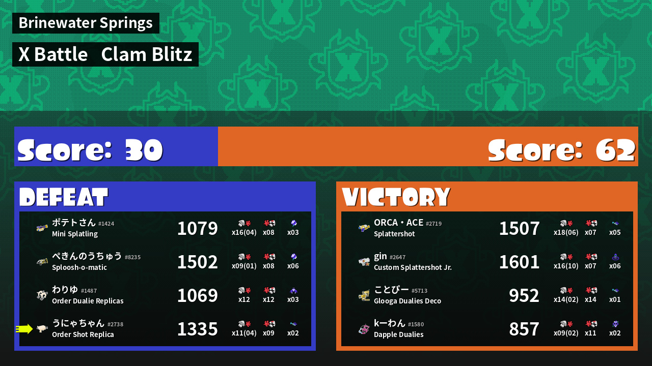 | Mode | Clam Blitz - X Battle | ||