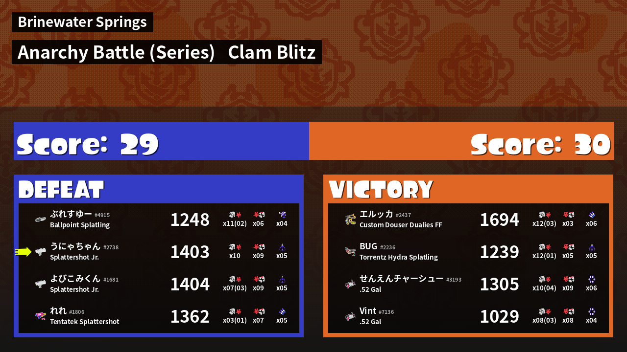| Mode | Clam Blitz - Anarchy Battle (Series) |
