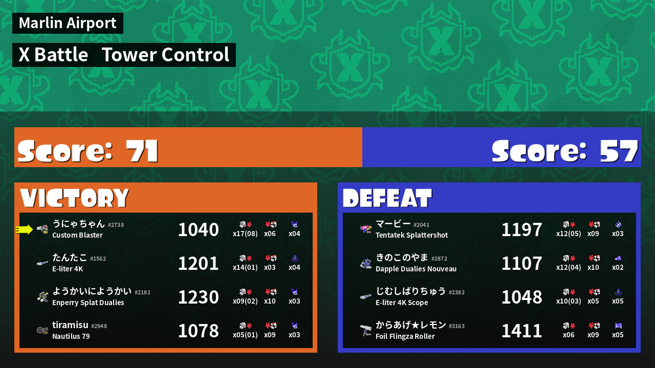 | Mode | Tower Control - X Battle |