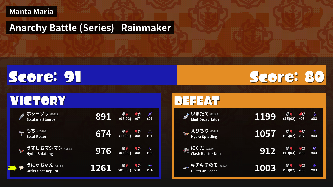 | Mode | Rainmaker - Anarchy Battle (Series) |