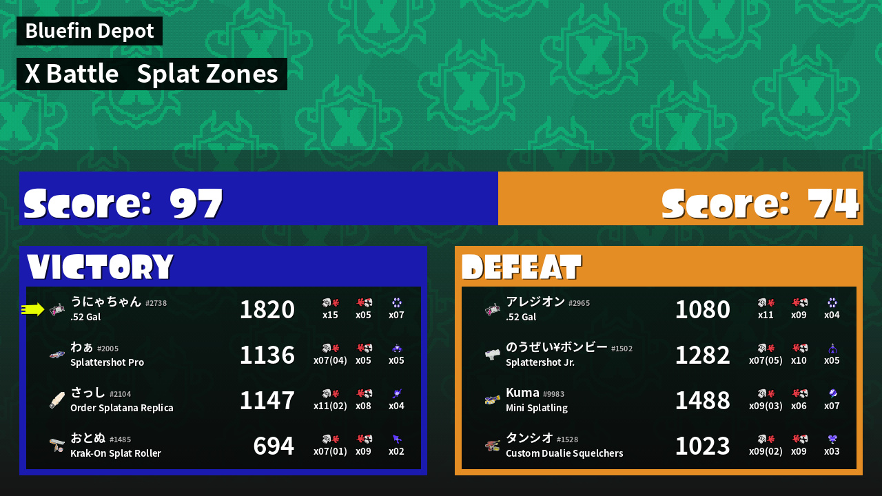 | Medals | #1 Overall Splatter #1 Splat Zone Guard #1 Turf Inker |