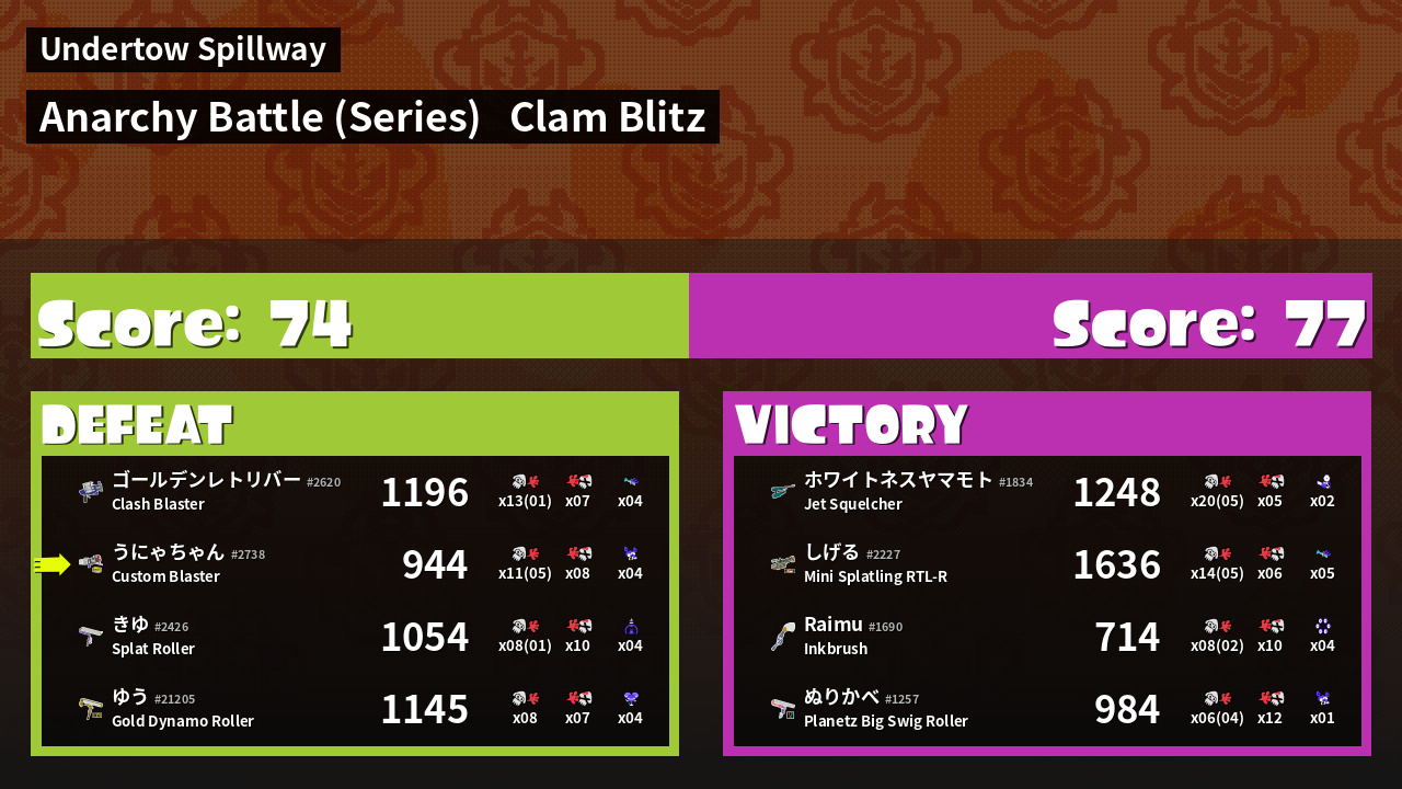 | Mode | Clam Blitz - Anarchy Battle (Series) |