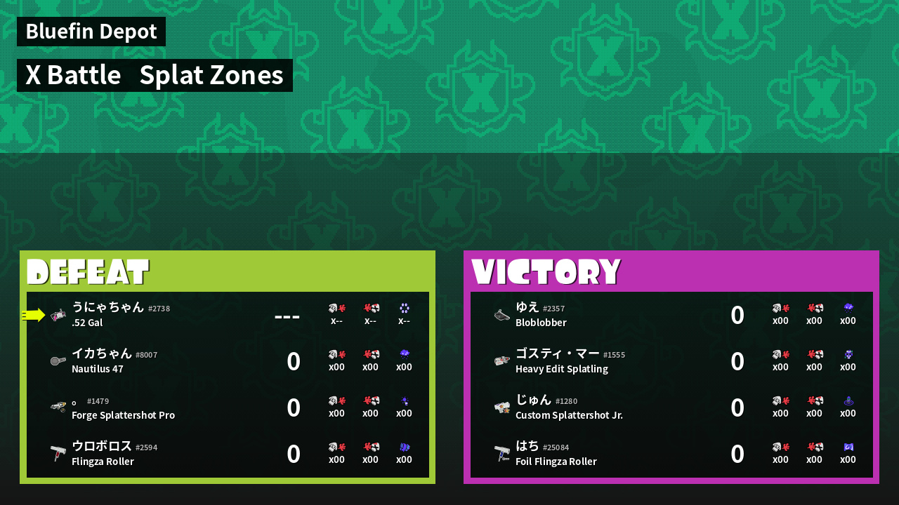 | Mode | Splat Zones - X Battle |