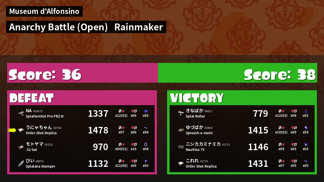 | Mode | Rainmaker - Anarchy Battle (Open) |