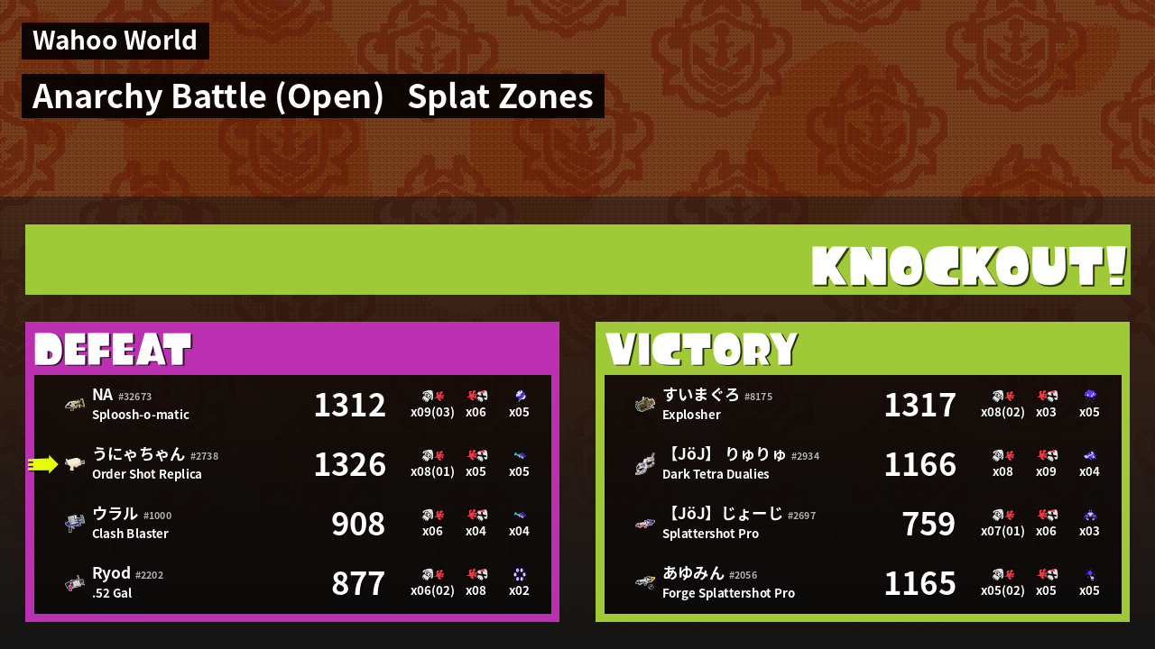 | Mode | Splat Zones - Anarchy Battle (Open) |