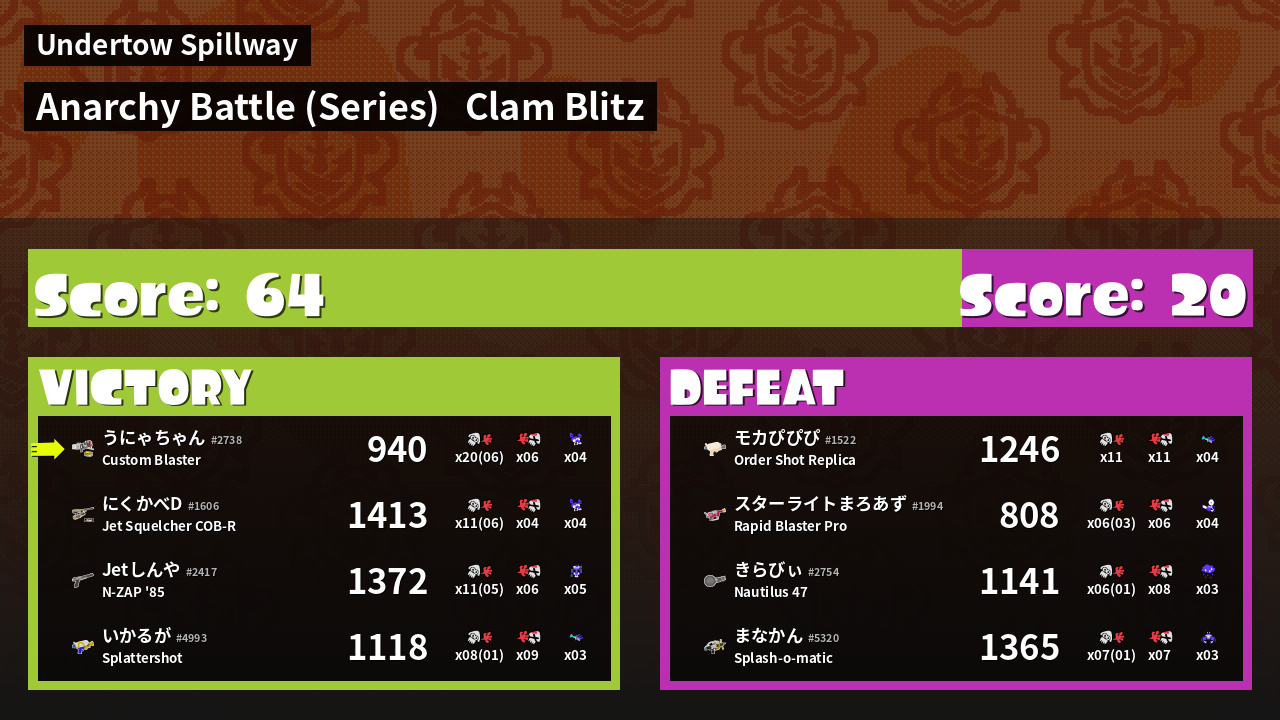 | Mode | Clam Blitz - Anarchy Battle (Series) |