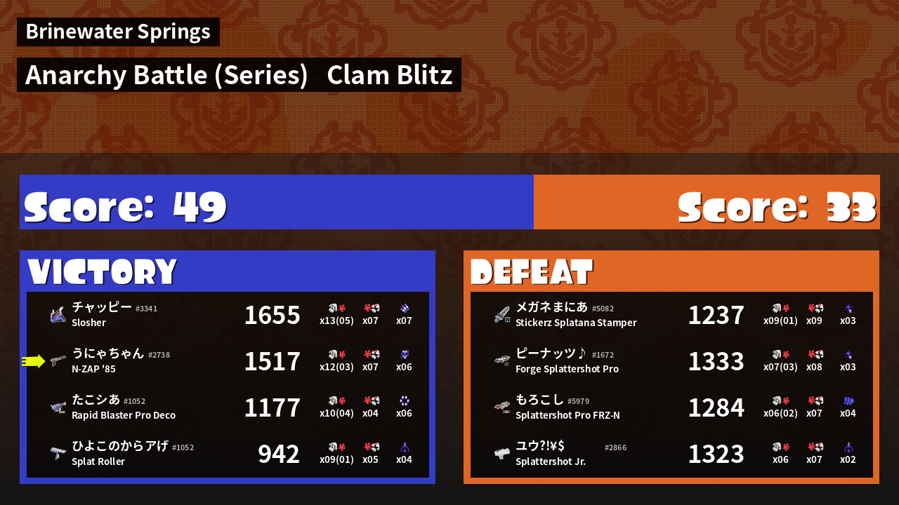 | Mode | Clam Blitz - Anarchy Battle (Series) |