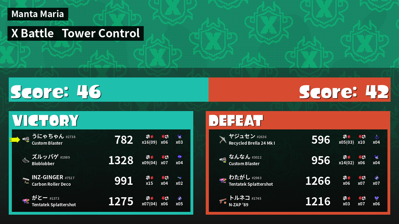 | Mode | Tower Control - X Battle | ||