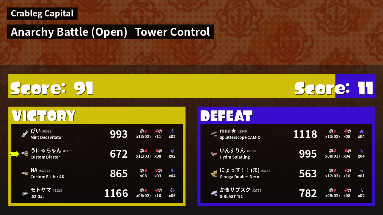 | Mode | Tower Control - Anarchy Battle (Open) |