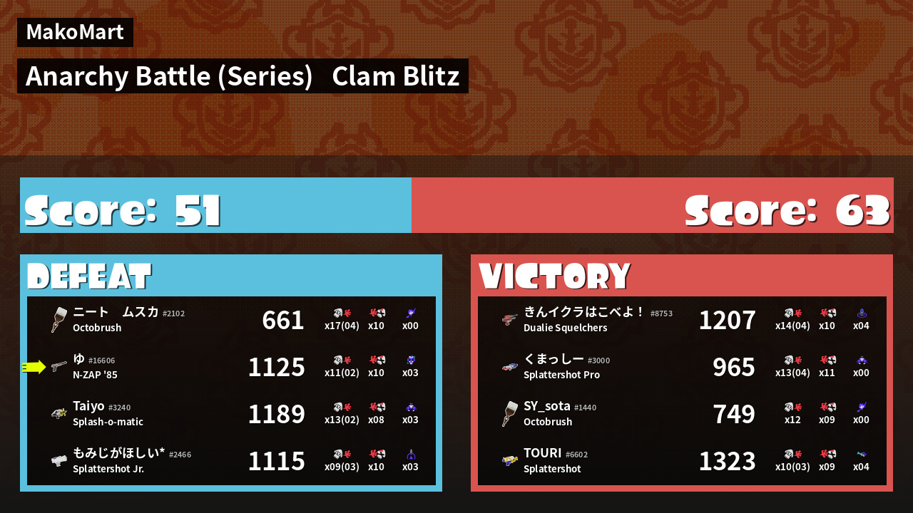 | Mode | Clam Blitz - Anarchy Battle (Series) | ||