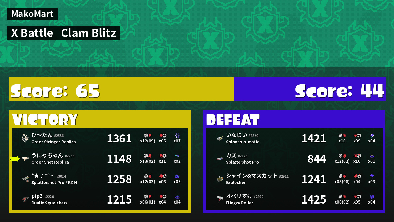 | Mode | Clam Blitz - X Battle |