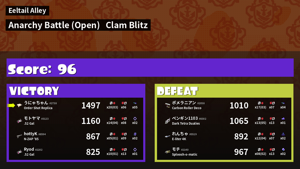 | Mode | Clam Blitz - Anarchy Battle (Open) |