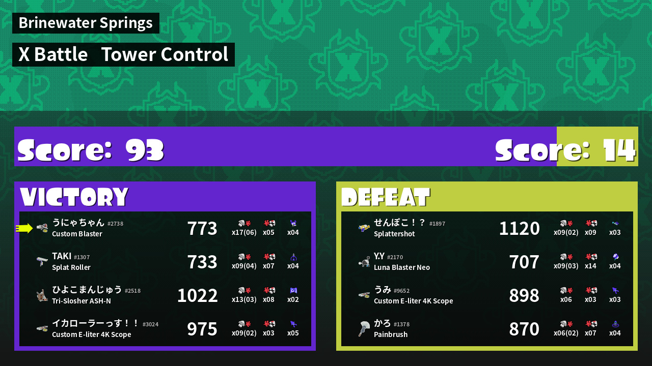 | Medals | #1 Overall Splatter #1 Score Booster #1 Enemy Splatter |