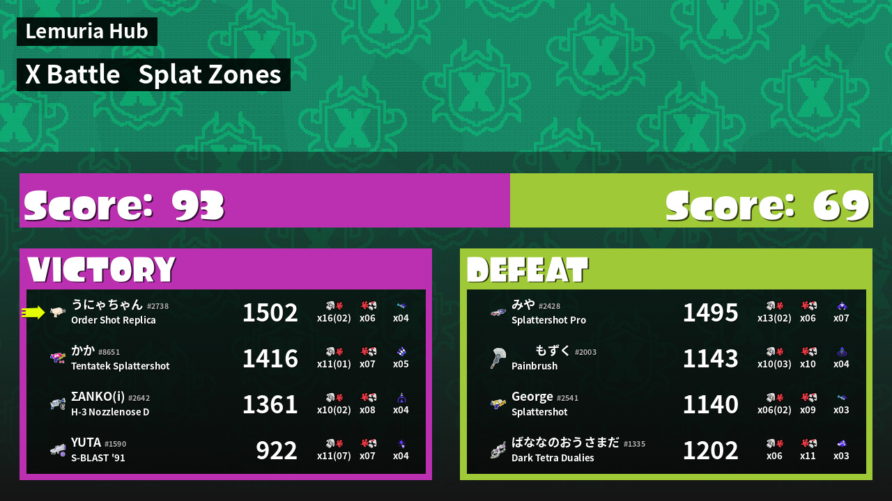 | Medals | #1 Overall Splatter #1 Splat Zone Guard #1 Turf Inker |