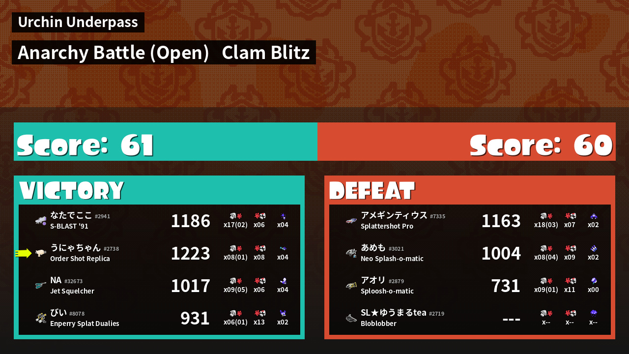 | Mode | Clam Blitz - Anarchy Battle (Open) |