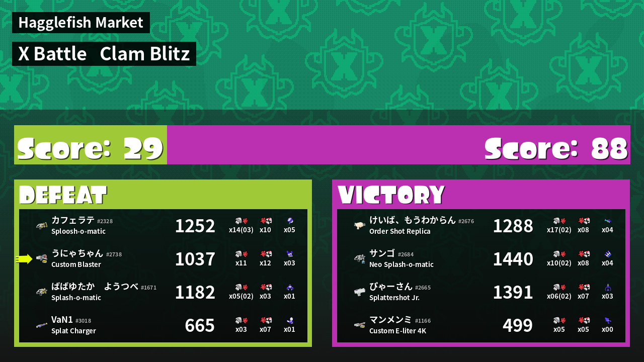 | Mode | Clam Blitz - X Battle |