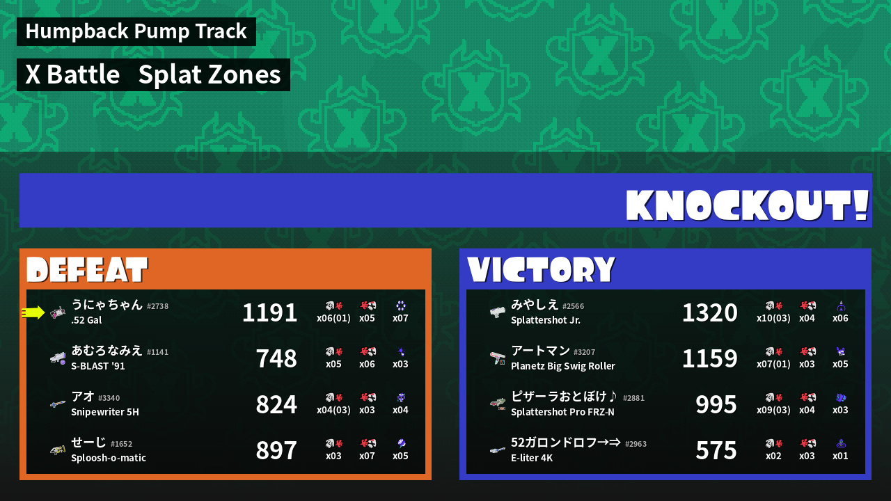 | Mode | Splat Zones - X Battle |
