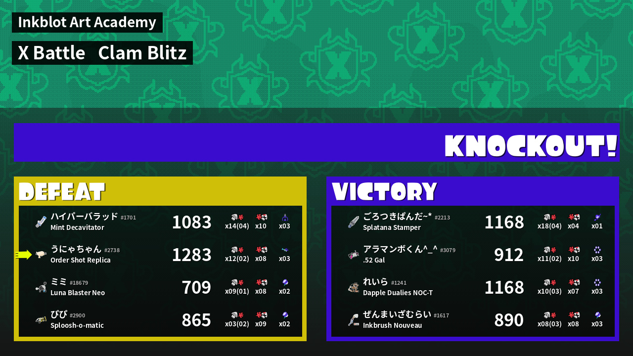 | Mode | Clam Blitz - X Battle |