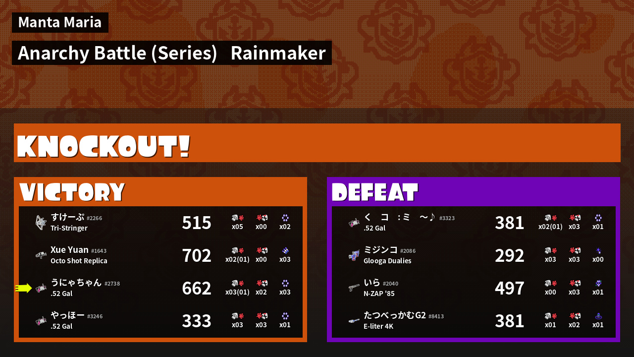 | Weapon | .52 Gal ( Splash Wall / Killer Wail 5.1) |