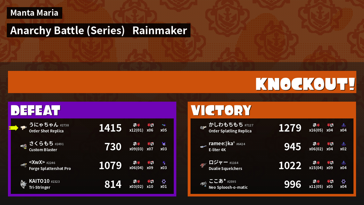 | Mode | Rainmaker - Anarchy Battle (Series) |