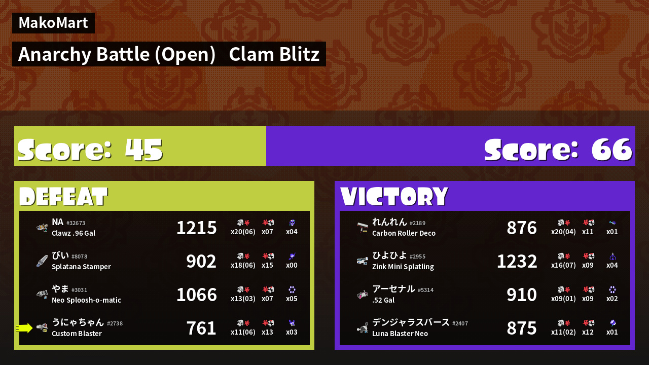 | Mode | Clam Blitz - Anarchy Battle (Open) |