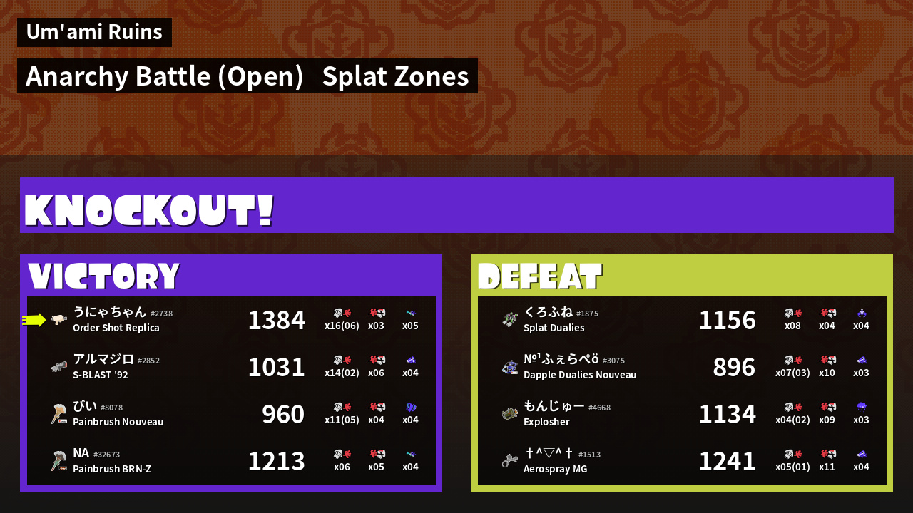 | Mode | Splat Zones - Anarchy Battle (Open) |