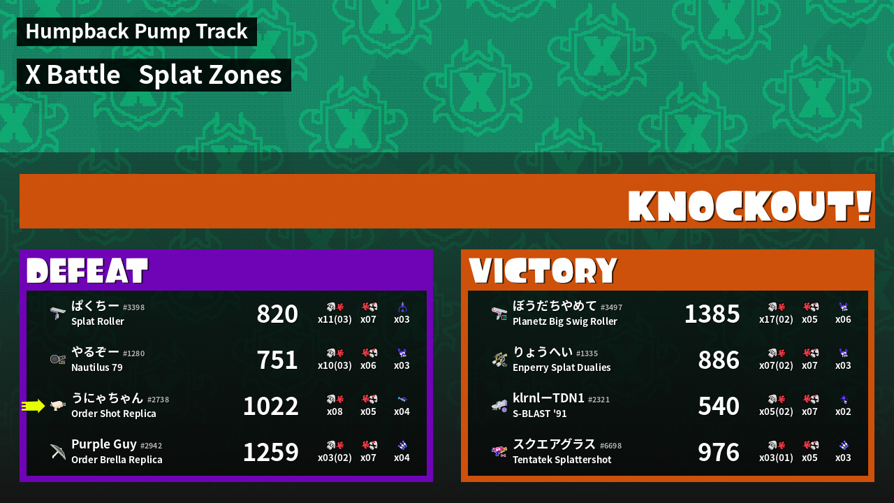 | Medals | #1 Splat Zone Guard #1 Super Jump Spot #1 Enemy Splatter |