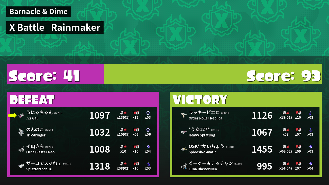 | Weapon | .52 Gal ( Splash Wall / Killer Wail 5.1) |