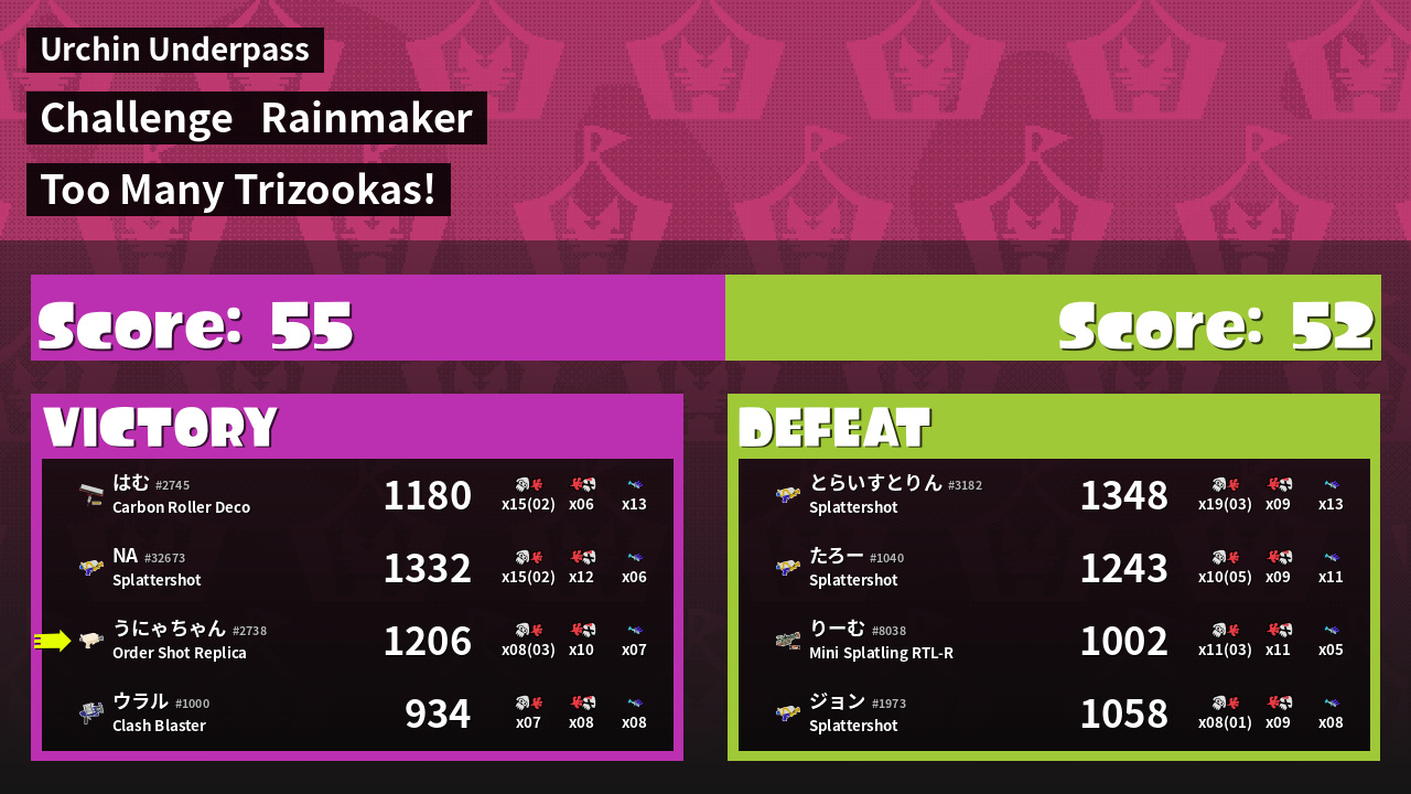 | Medals | #1 Splat Assister #1 Rainmaker Carrier #1 Ground Traveler |