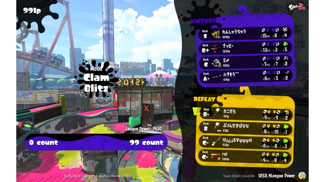 | Mode | Clam Blitz - League Battle (Twin) | |||||||||||||||||||||||||||||||||||||||||||