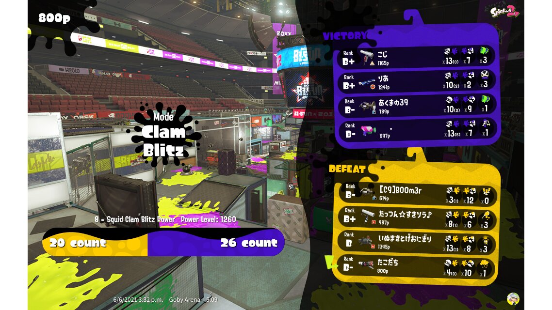 | Mode | Clam Blitz - Ranked Battle | ||||||||||||||||||||||||||||||||||