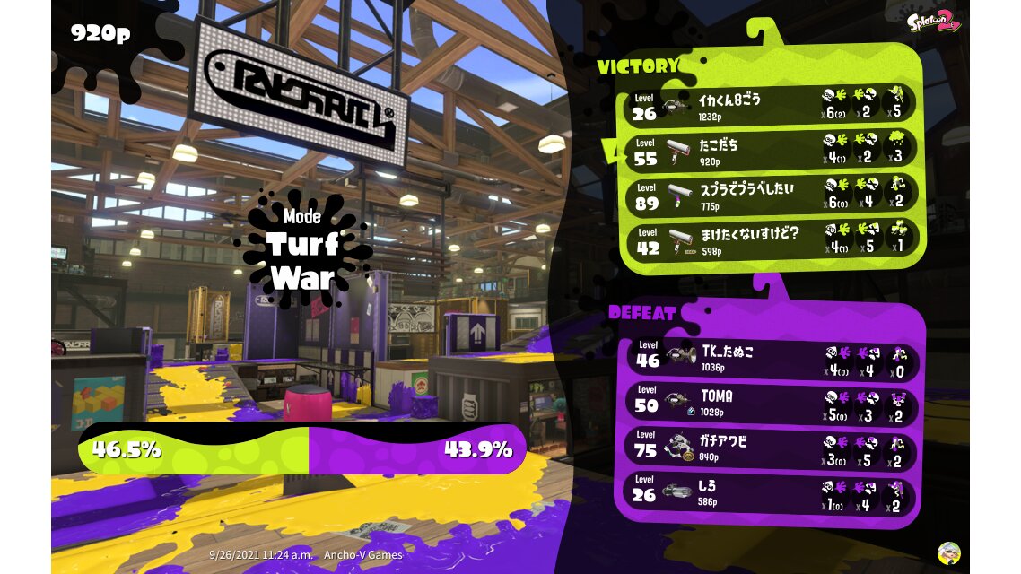 | Mode | Turf War - Regular Battle | |||||||||||||||||||||||||||||||||||||||||||