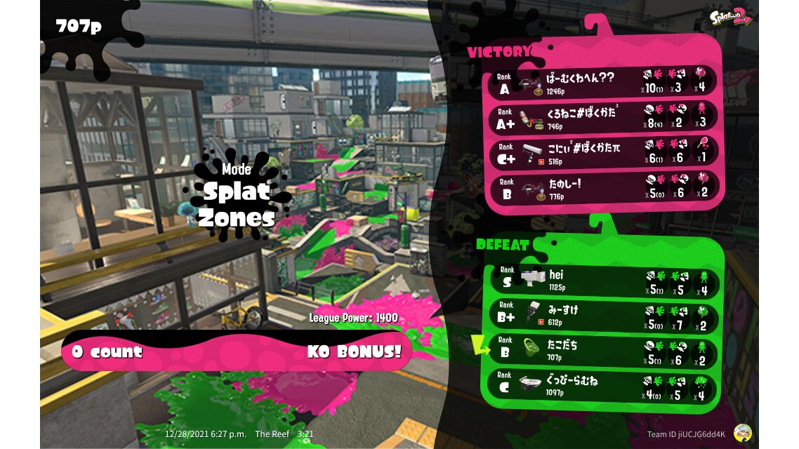 | Mode | Splat Zones - League Battle (Twin) | ||||||||||||||||||||||||||||||||||||||||||||||