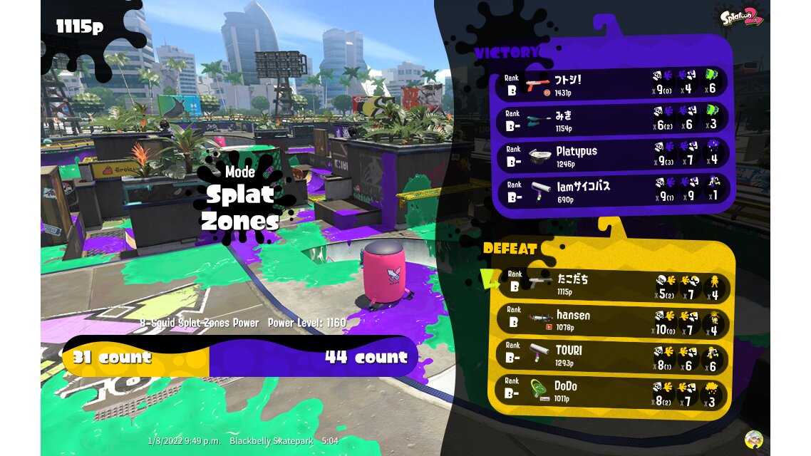 | Mode | Splat Zones - Ranked Battle | ||||||||||||||||||||||||||||||||||||||||||||||