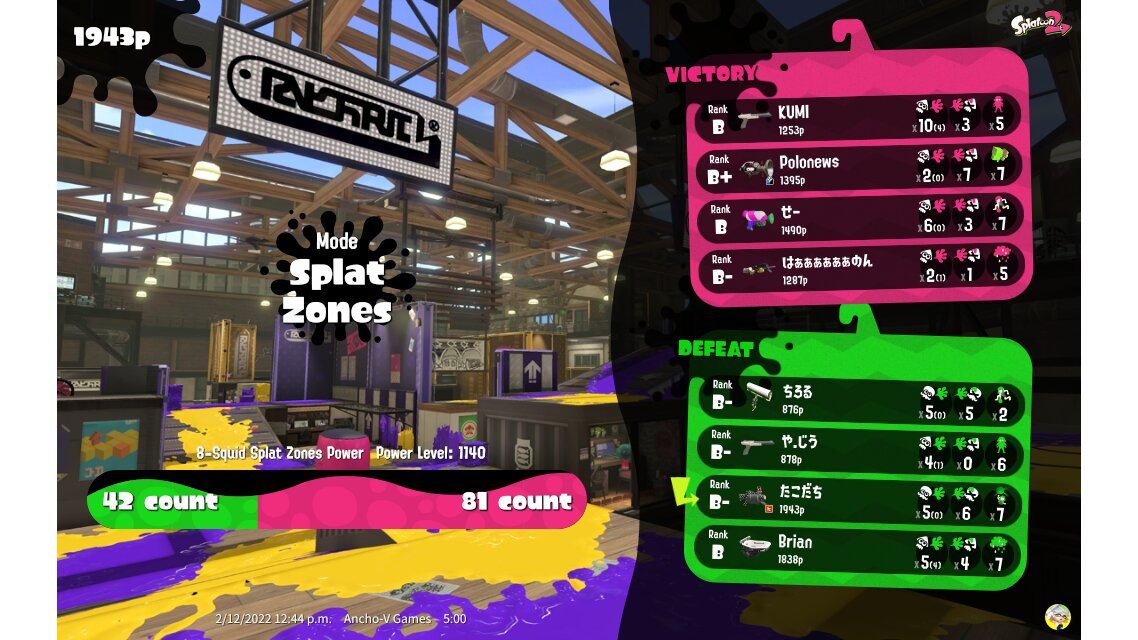 | Mode | Splat Zones - Ranked Battle | ||||||||||||||||||||||||||||||||||||||||||||||