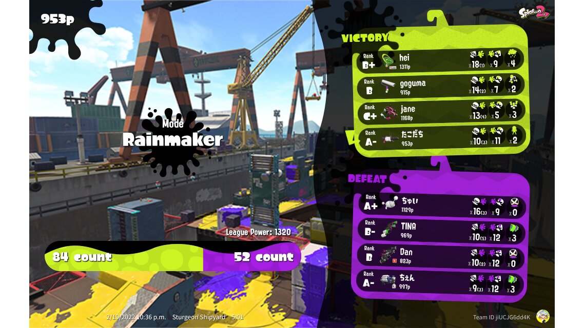 | SplatNet Battle # | 2,764 | ||||||||||||||||||||||||||||||||||||||||||||||